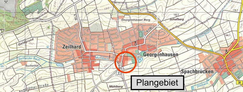 Das Baugebiet befindet sich am süd-östlichen Ortsrand von Georgenhausen, Zugang über Dörnbachstr. 10 und südliches Ende der Dörnbachstraße.